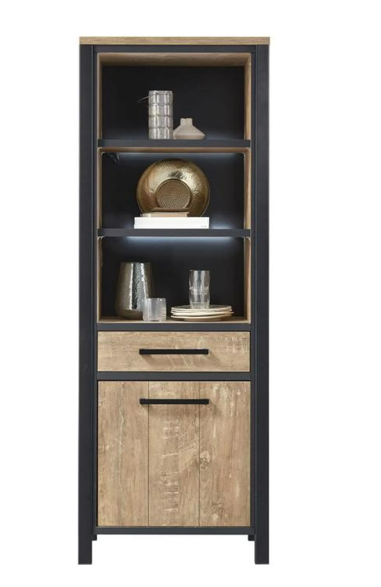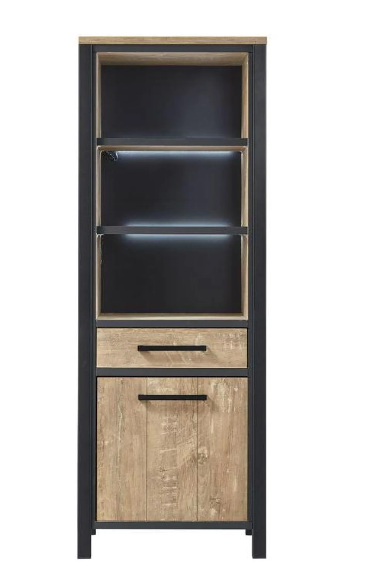 Industriële boekenkast met verlichting en linksdraaiende deur Mendiga