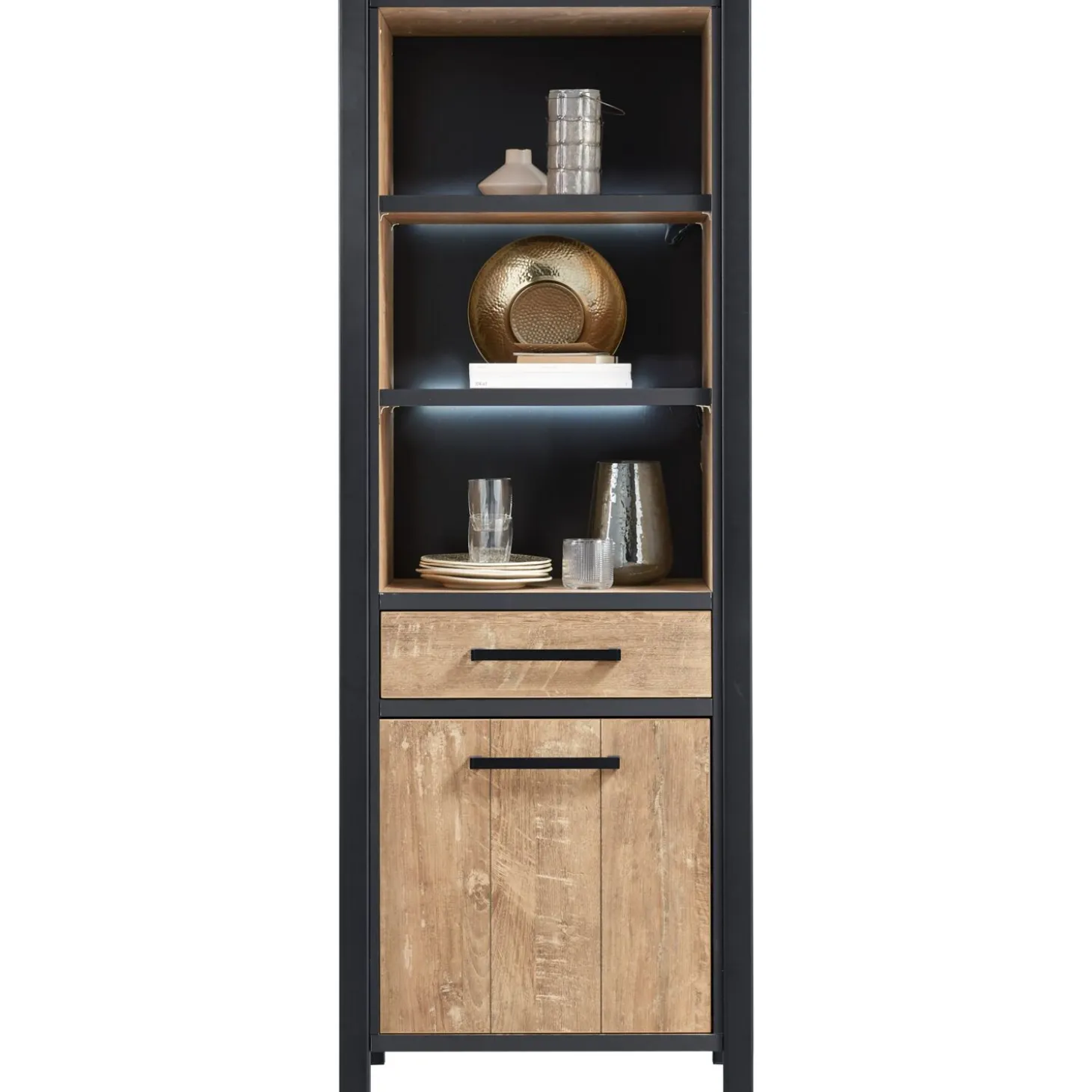 Industriële boekenkast met verlichting en rechtsdraaiende deur Mendiga