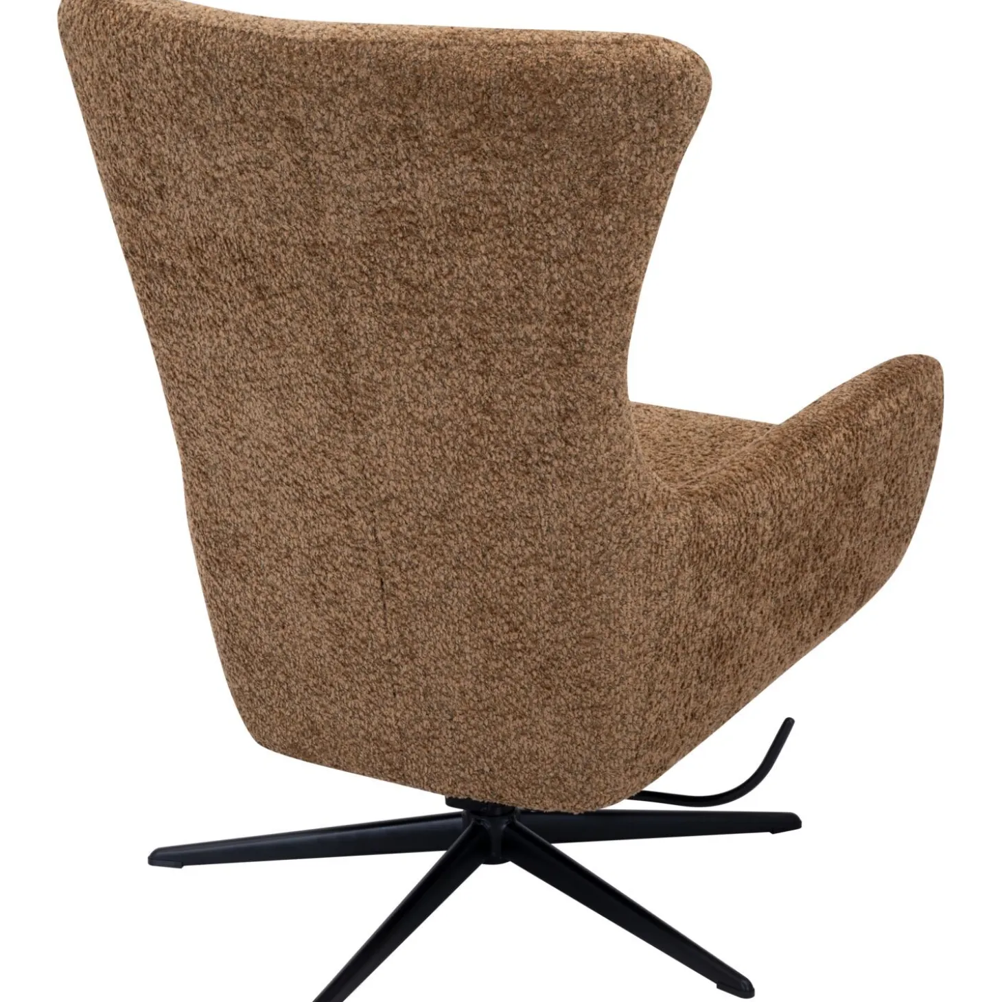 Draaifauteuil Alora is gebaseerd op een klassieke Engelse oorfauteuil maar met een moderne make-over. De rondlopende rugleuning met ‘oren’ aan de zijkanten geeft een uiterst comfortabel en geborgen zitcomfort.