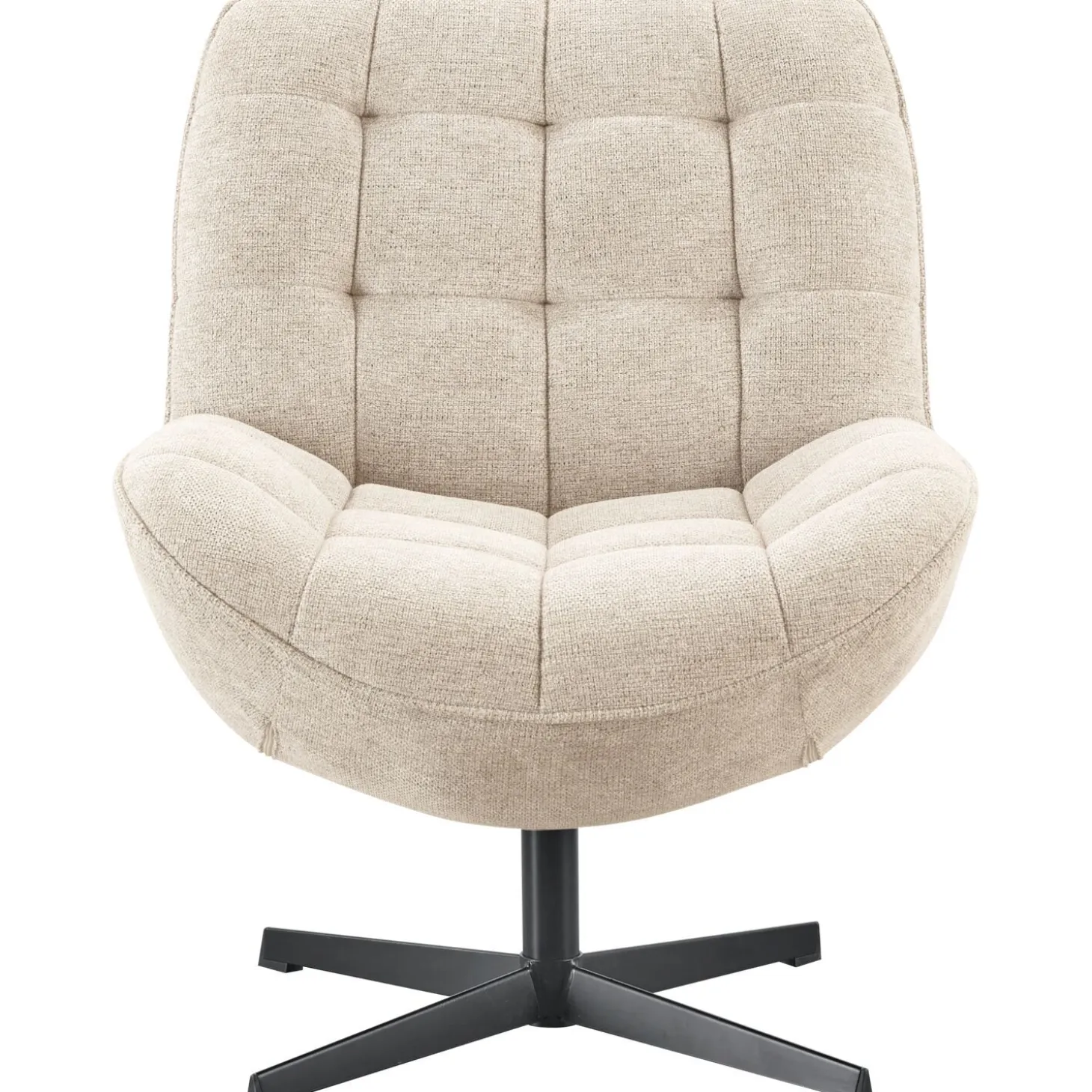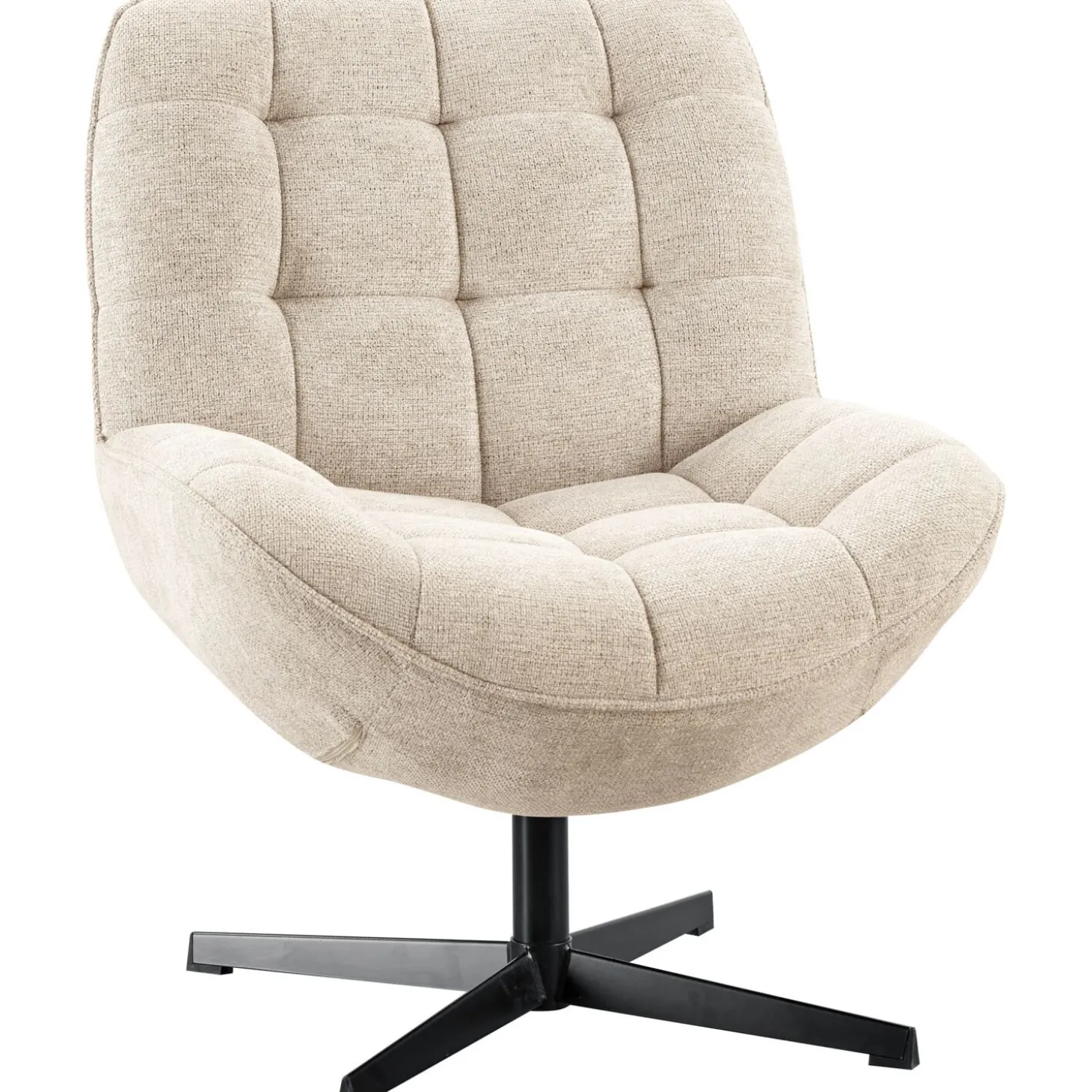 In draaifauteuil Morley kun je heerlijk relaxen! De kuipzit in combinatie met de heerlijk zachte stof roept toch om jouw naam? De fauteuil is bekleed met een beige gemêleerde weefstof. Deze licht meerkleurige kwaliteit heeft een wat grovere structuur, maar wel een erg zachte touch. De fauteuil is 360 graden draaibaar, en bevat een mooi sierstiksel op zowel de rugleuning als de zitting, wat de fauteuil een echte eyecatcher maakt.