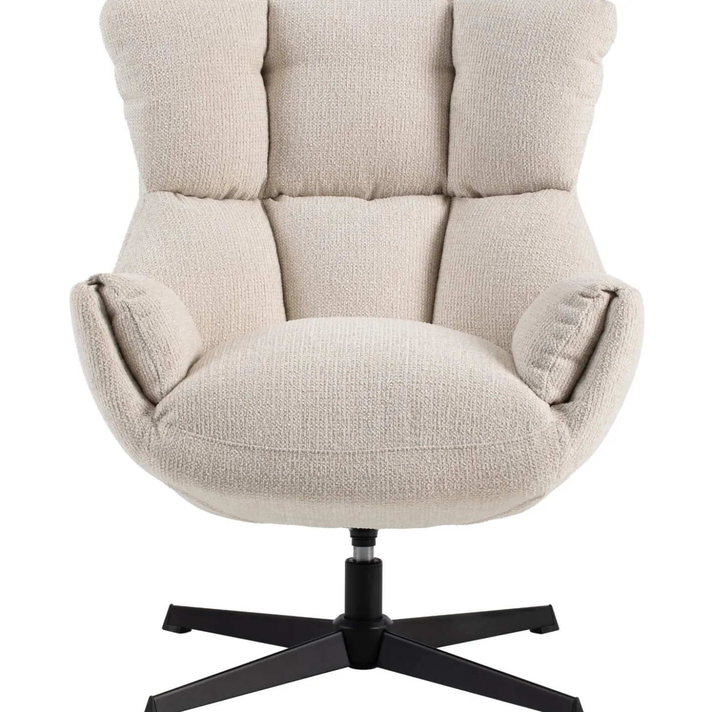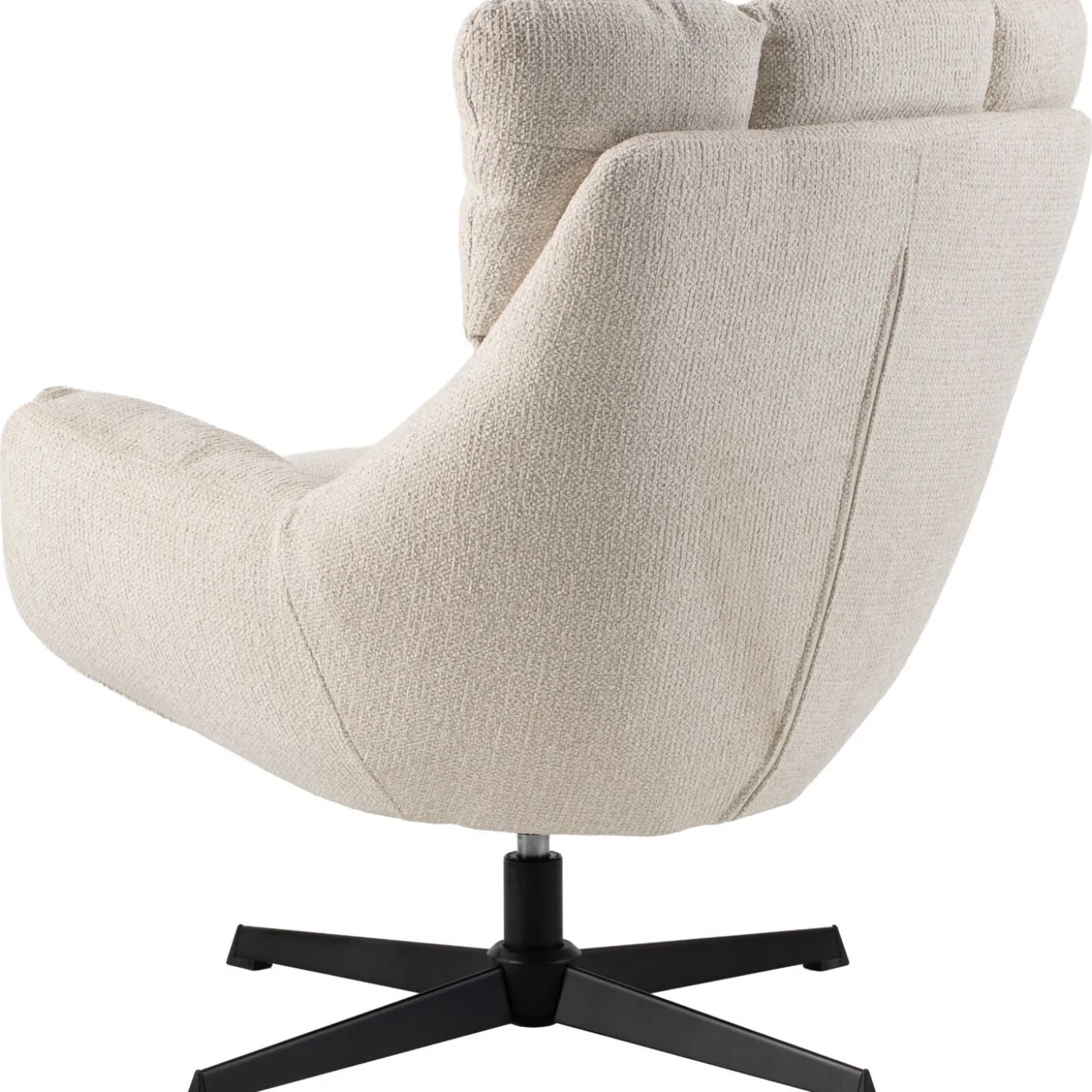 | Uitvoering | Uitgevoerd in stof milan 103-cream met polyetherschuim in de zitting en rug en een zwarte metalen draaipoot. |