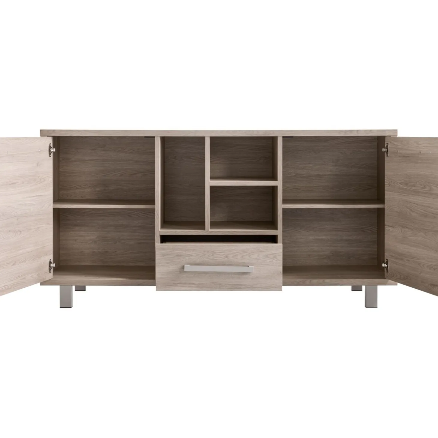 - Met 2 deuren, 1 lade en 3 open vakken