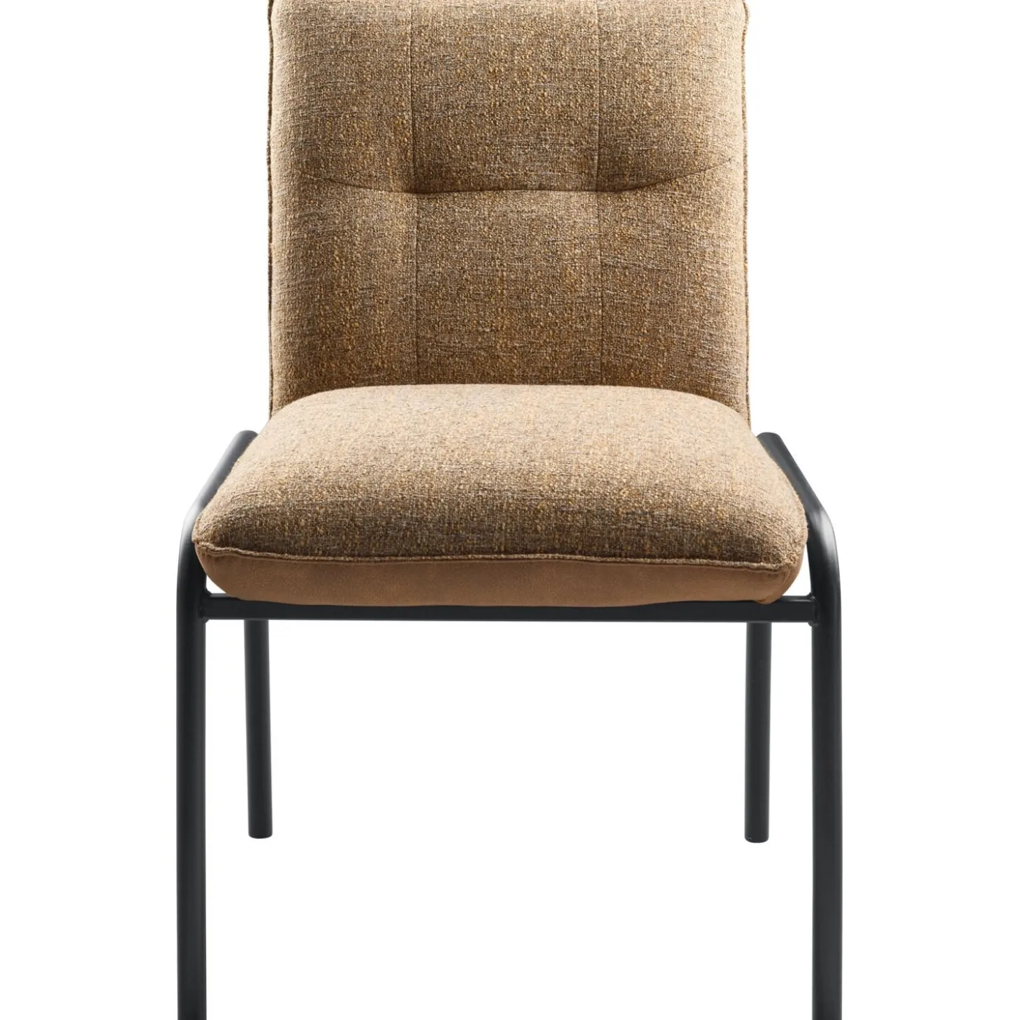 Met de Alzy haal je een mooie en comfortabele eetstoel in huis. De zwart gepoedercoate, ronde poten en de combinatie van stof python in de kleur 09-camel en stof oasis in de kleur 16-caramel bekleding geeft deze eetstoel een luxe uitstraling. Het zitkussen is voorzien van nosagveren in combinatie met koudschuim wat zorgt voor een heerlijk comfortabele zit.