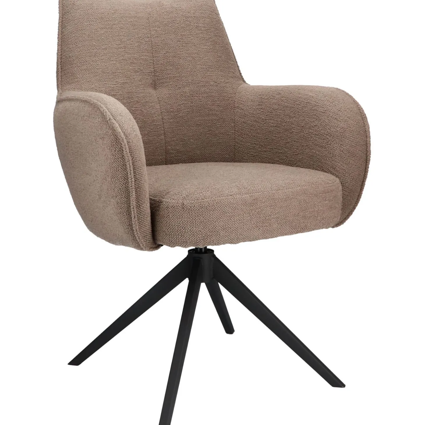 Armstoel Derio ziet er heerlijk comfortabel uit! Dit nodigt uit om heerlijk te gaan zitten. De taupekleurige weefstof is heerlijk zacht, dit nodigt uit om lekker te gaan zitten. Het zwarte onderstel met smalle poten geeft de stoel een verfijnd uiterlijk. De intrekking in de rugleuning maakt de stoel helemaal af.