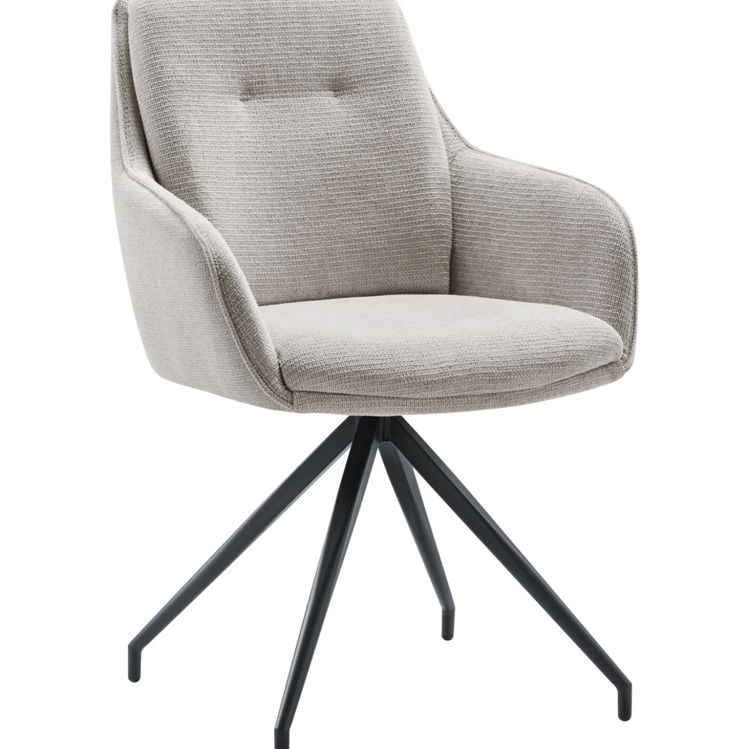 De zitting en de rug zijn voorzien van polyetherschuim, dit zorgt voor een wat steviger zitcomfort. Zowel de rug als de armleuningen zijn voorzien van een bies en afgewerkt met een contraststiksel. De zwart metalen poot is draaibaar tot 180 graden, hierdoor kun je heel makkelijk gaan zitten en weer opstaan, zonder de stoel te verschuiven. Dit is tevens ideaal als je wat minder ruimte bij je eettafel hebt.