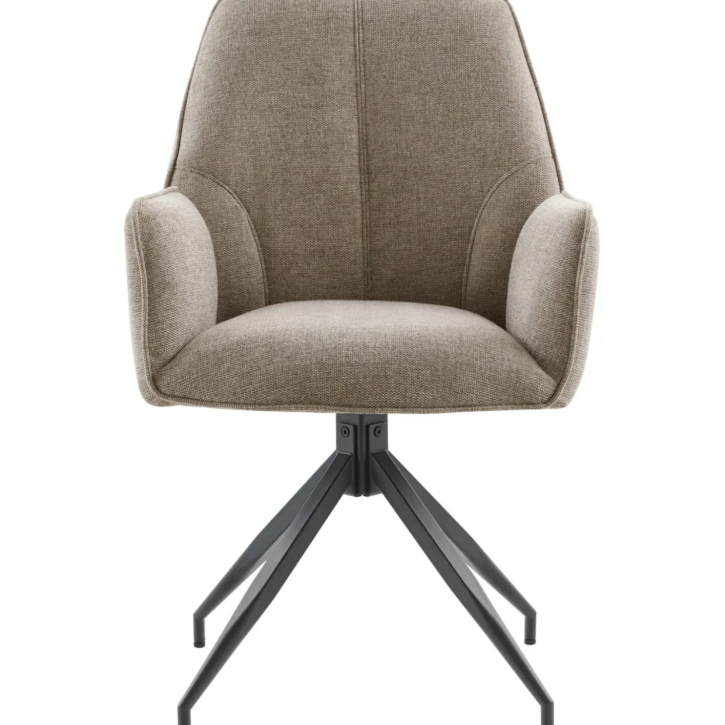 | Uitvoering | Uitgevoerd in stof belfast 04-taupe met polyetherschuim in de zitting en de rug en een mat zwart metalen poot met terugdraaimechanisme. |