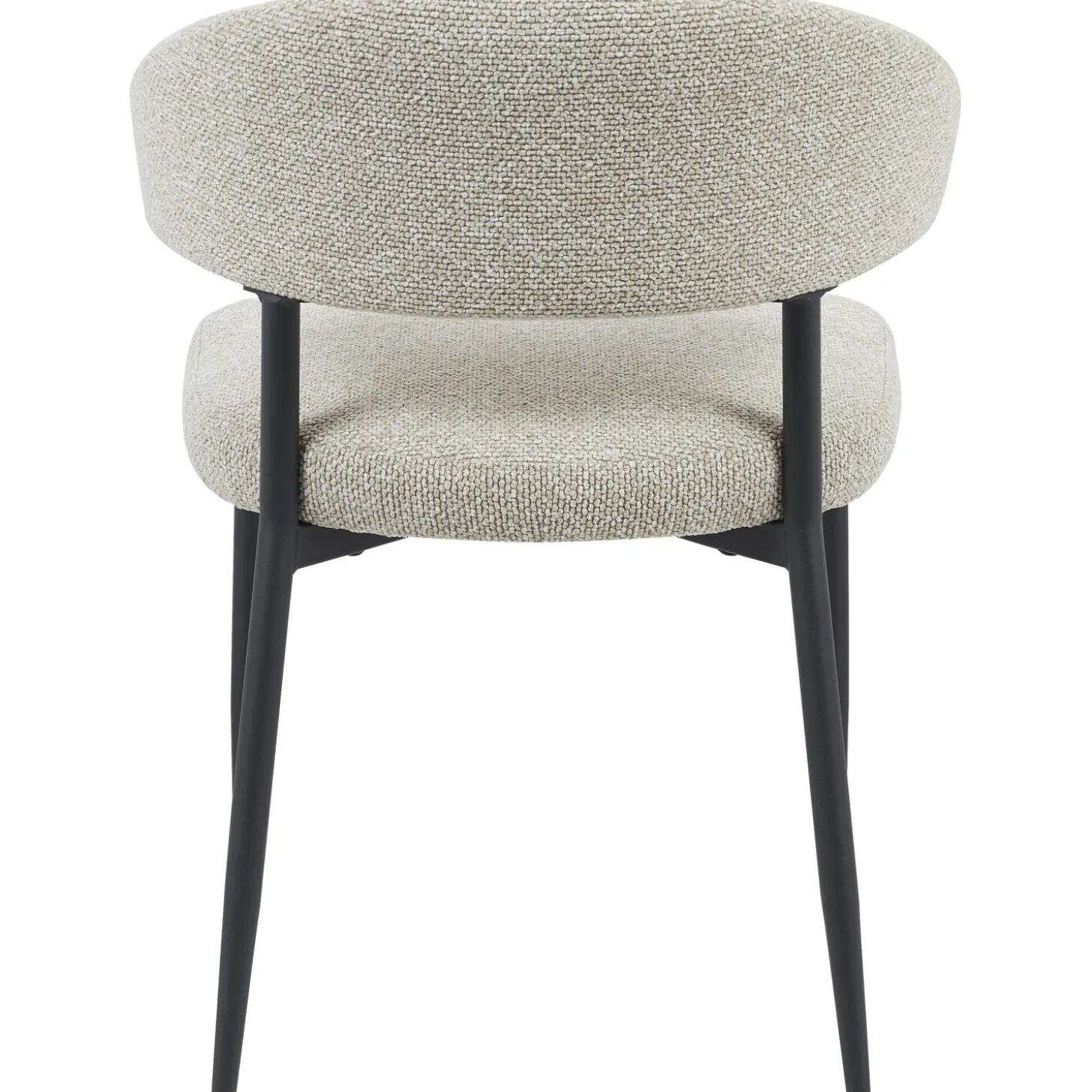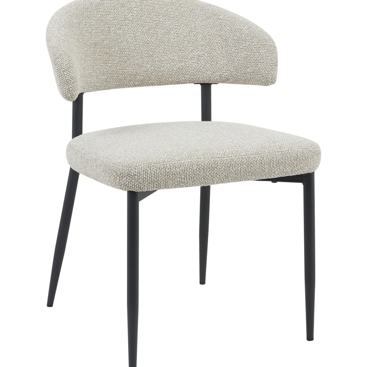 Eetkamerstoel Roseto heeft een strakke en minimalistische vormgeving, wat perfect past in een eigentijds interieur. De zachte, gemêleerde weefstof heeft verschillende tinten beige. Dit zorgt voor een warme uitstraling van de stoel. Het zwart metalen frame geeft een stoer tintje.