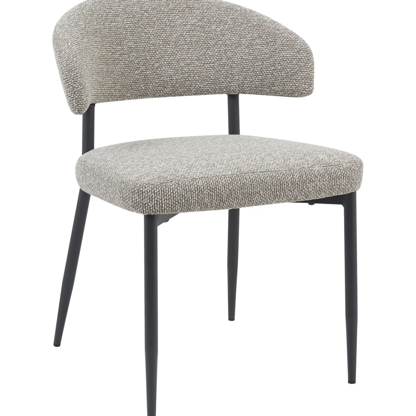 Eetkamerstoel Roseto heeft een strakke en minimalistische vormgeving, wat perfect past in een eigentijds interieur. De zachte, gemêleerde weefstof heeft verschillende tinten grijs. Dit zorgt voor een warme uitstraling van de stoel. Het zwart metalen frame geeft een stoer tintje.