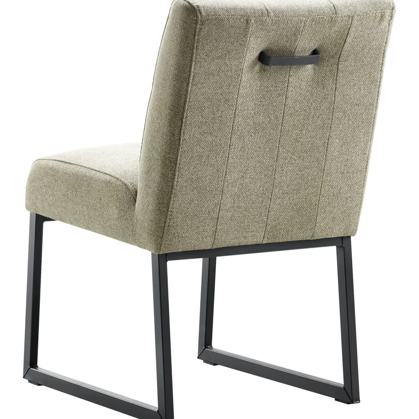 Deze uitvoering van stoel Thurso is uitgevoerd in de fijngeweven stof rate in de kleur thyme. De stof voelt aangenaam aan zorgt samen met de vierkante stiksels op de rugleuning voor een comfortabele uitstraling van stoel Thurso. Het zwart metalen frame geeft het geheel een moderne, stoere look. De zitting is comfortabel dik en voorzien van nosagvering, wat een licht verend zitcomfort geeft en lang zijn vorm behoud. Stoel Thurso is zeer geschikt voor uren natafelen.