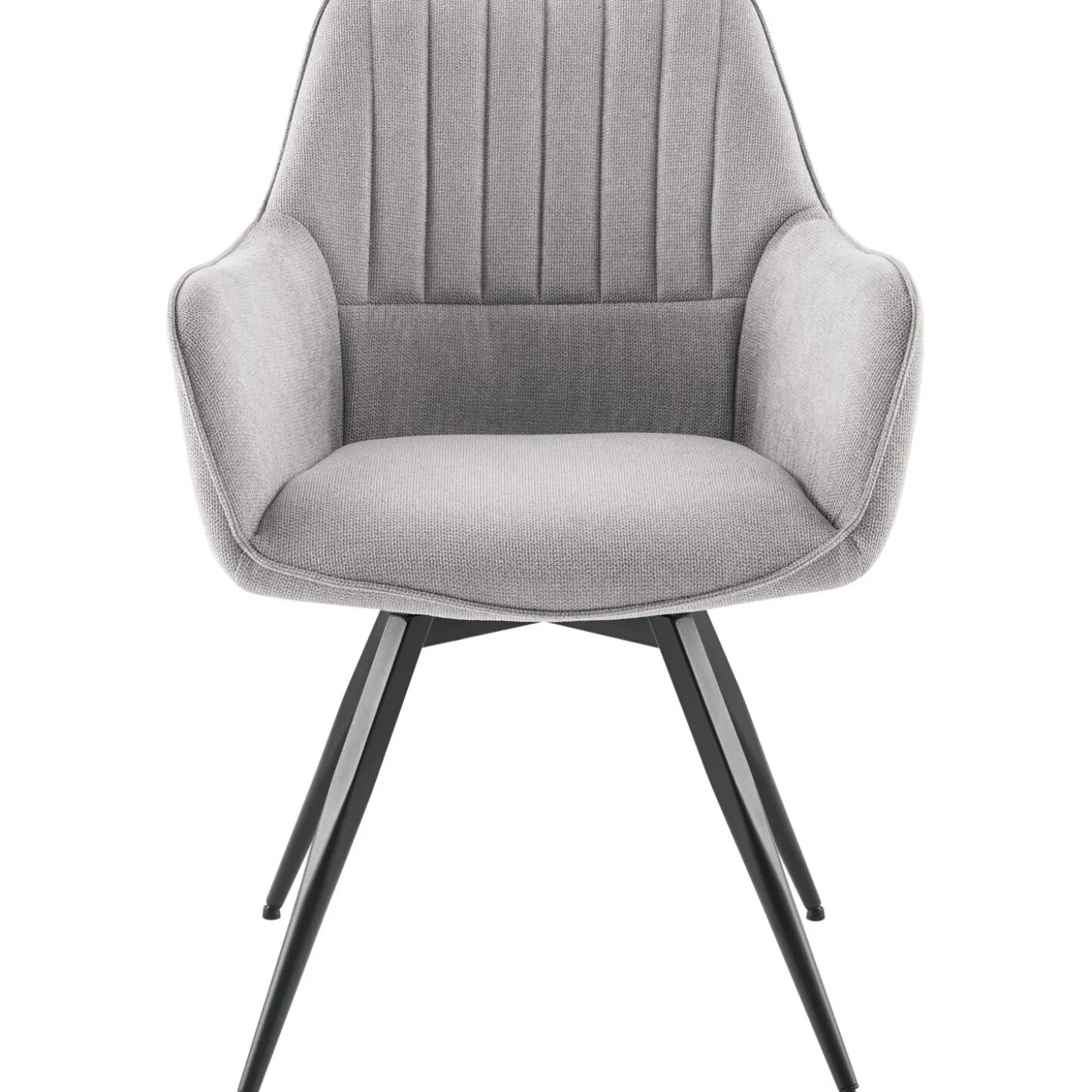 De stoel is bekleed met de grijze, zachte stof Bloq. Dit is een plat geweven stof met een gemĂȘleerde look. De rugleuning is voorzien van verticale sierstiksels en de stiknaden zijn afgewerkt met een fraaie bies. In combinatie met het zwarte metalen frame van de stoel zorgt dit voor een moderne en toch tijdloze uitstraling. Goed om te weten: het frame en het draaimechanisme moeten nog worden gemonteerd. Met de bijgesloten montagehandleiding is dit zo gebeurd.