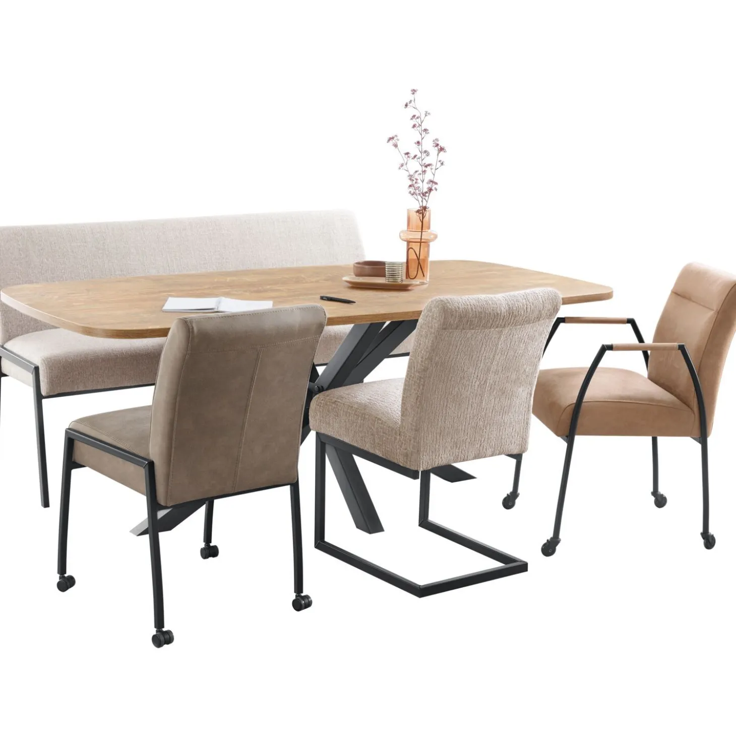 De tafel heeft een Deens ovaal blad met een lengte van 200 cm en een breedte van 100 cm, waardoor je in totaal 6 stoelen aan deze tafel kwijt kunt. Omdat een Deens ovaal tafelblad geen scherpe hoeken heeft, biedt het meer ruimte voor gasten en stoelen rondom de tafel. De hoogte tot de onderkant van de tafel is ca. 72 cm; dit is belangrijk als je er armstoelen aan wilt zetten. Het blad rust op een stevige zwarte metalen spinpoot, die niet alleen stabiliteit garandeert, maar ook een gedurfd contrast biedt. Het samenspel van natuurlijke elementen en modern design maakt deze tafel een blikvanger in elk interieur. De poot van de tafel is met behulp van de handleiding eenvoudig te monteren.
