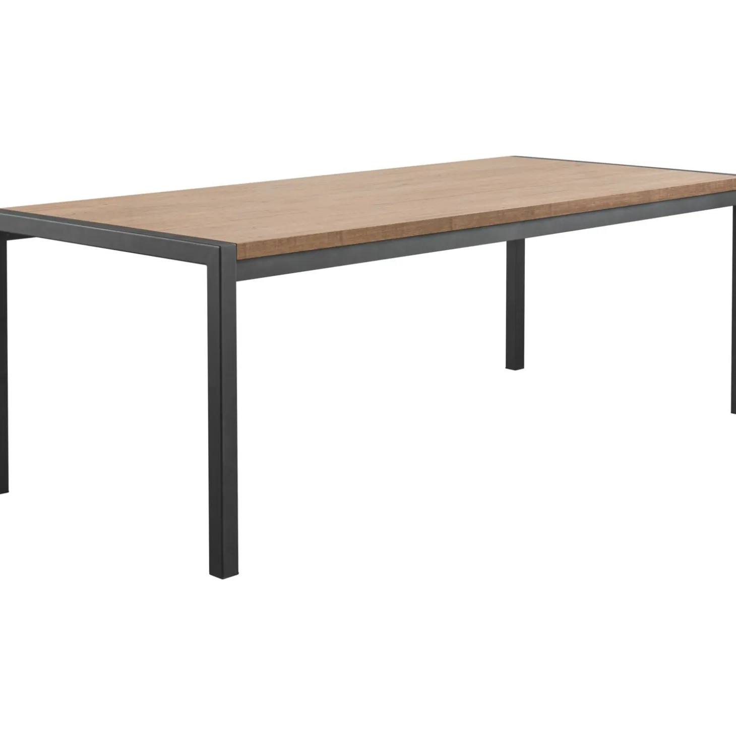 Deze eettafel heeft een mooie uitstraling door de combinatie van zwart metaal met melamine in de kleur dark mango. Melamine lijkt op echt hout, het is makkelijk in onderhoud en erg krasbestendig. Een erg gebruiksvriendelijke tafel dus!