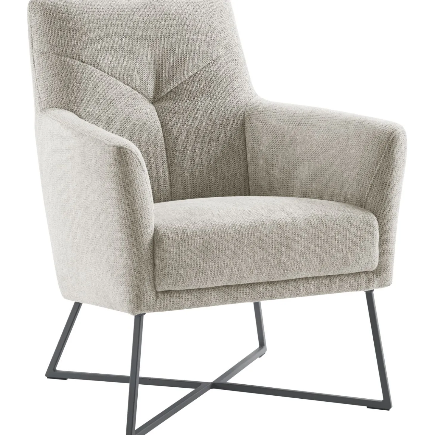 Fauteuil Menori heeft een moderne uitstraling door het grijze metalen frame en de lage rugzitting. In de rugzitting zit HR-koudschuim verwerkt voor extra comfort. De fauteuil is bekleed met een zachte lichtgrijze weefstof. De stof zorgt er voor dat de fauteuil heerlijk comfortabel aanvoelt. Menori wordt gemonteerd geleverd, zodat jij hem gelijk een plekje kan geven in je interieur.