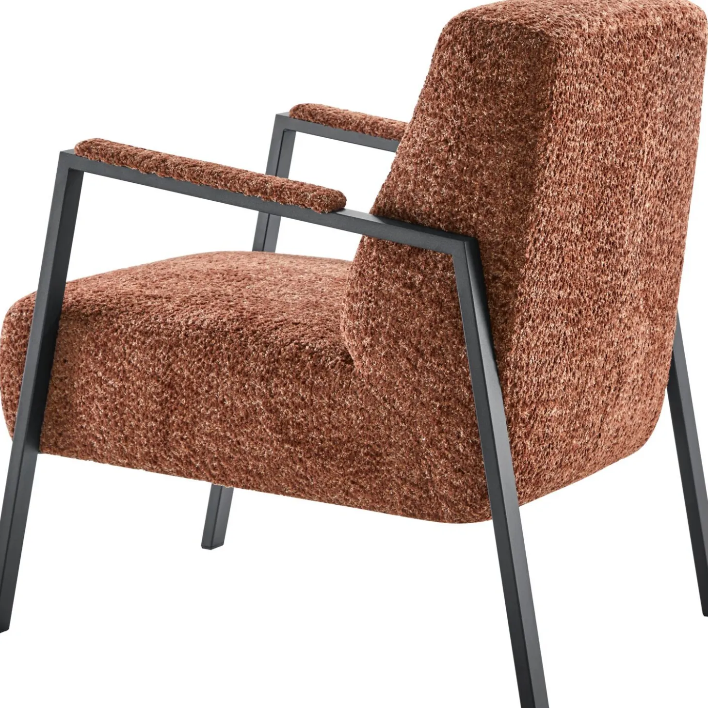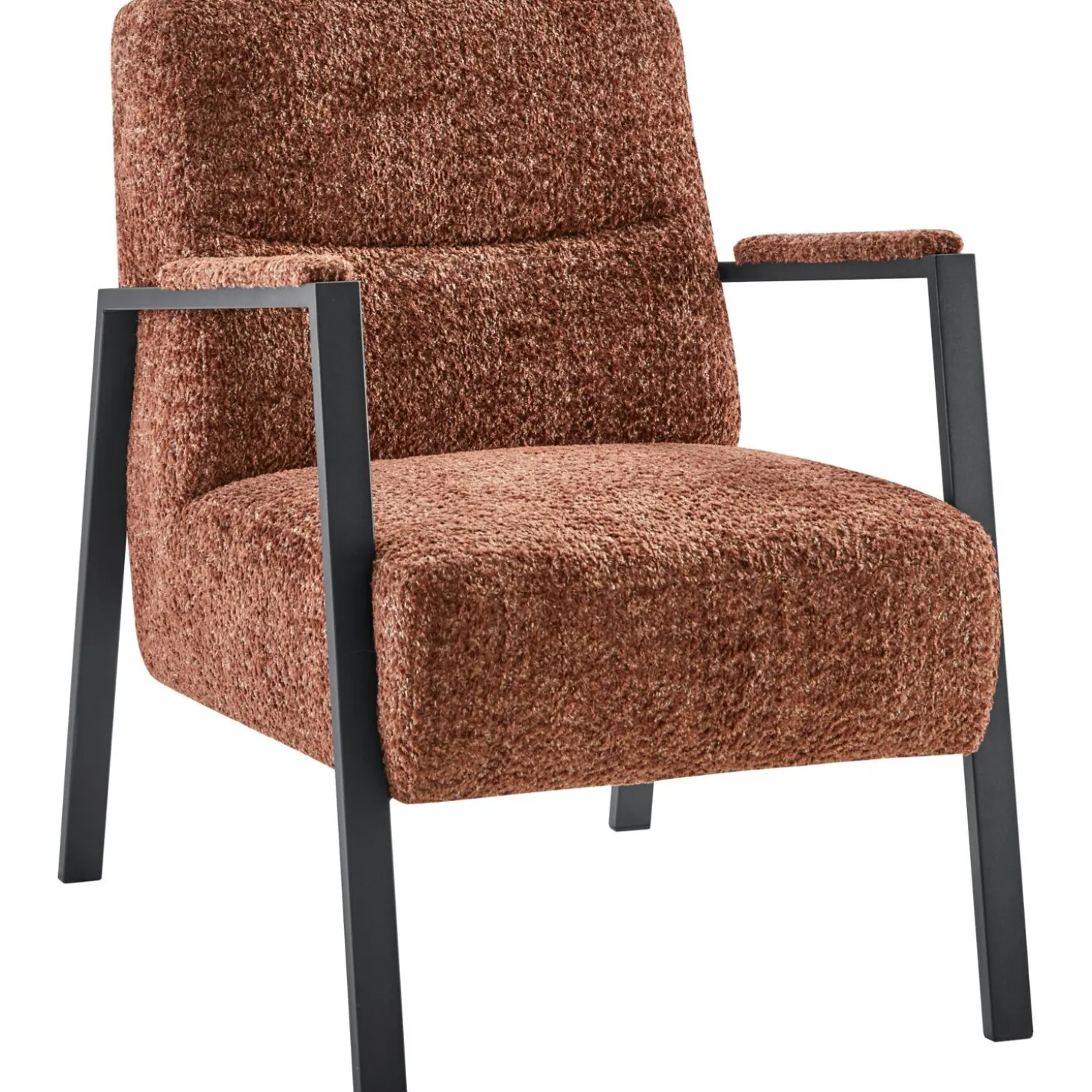 Koperkleurige fauteuil Safira met zwart metalen frame