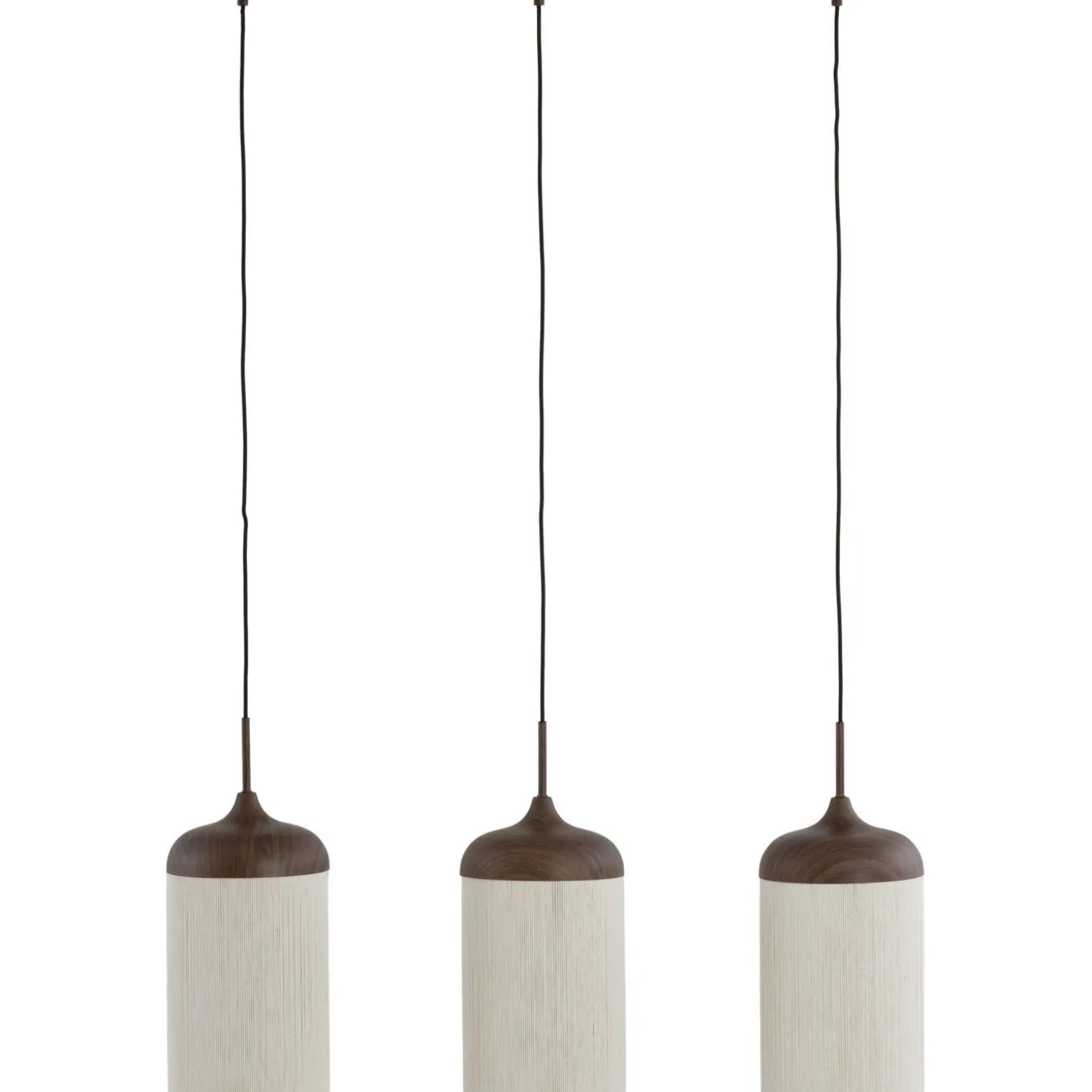 | Uitvoering | 3 lichts, uitgevoerd in houtprint donkerbruin met crèmekleurige kapjes. Geschikt voor maximaal 40 watt. Fitting: 3x E27 (grote fitting). |