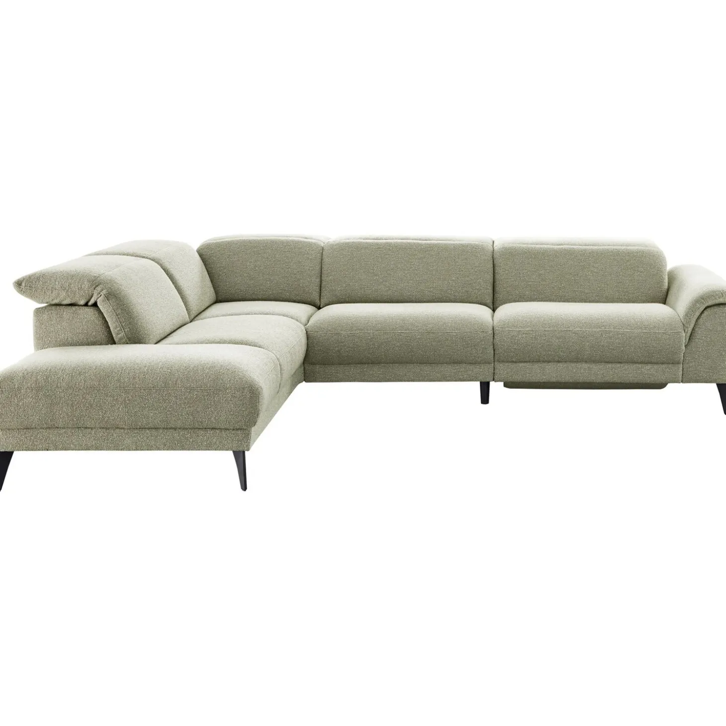| Uitvoering | Hoek met eiland links + 1,5 zits (90) zonder armen + 1,5 zits (90) arm rechts met elektrische relaxfunctie en verstelbare hoofdsteun uitgevoerd in stof lodge 206-thyme met pocketvering met een toplaag van HR-koudschuim in de zitting, HR-koudschuim in de rug en zwarte metalen poten type 2O1K. |