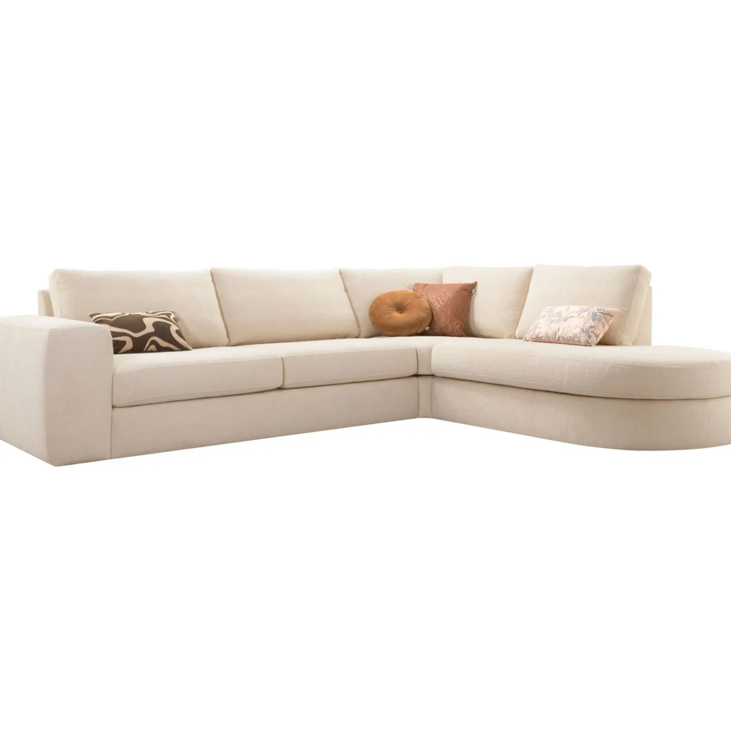 Zachte hoekbank Azara in beige teddystof