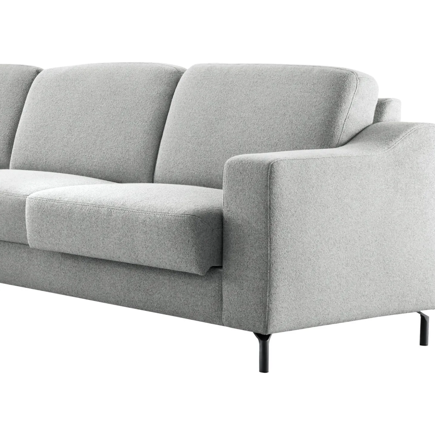 Met bankenconcept Mirtho kan je alle kanten op! Je kan deze bank geheel naar eigen wens samenstellen. Door de vele opties kan je model Mirtho helemaal eigen maken, waardoor de bank past in veel verschillende interieurs en bij diverse interieursmaken. Deze uitvoering van bank Mirtho is voorzien van een lage rug, een mooi gevormde armleuning en zwart metalen poten. De bank is bekleed met een grijze weefstof die zacht en comfortabel aanvoelt. De bank heeft vaste rug- en zitkussens.