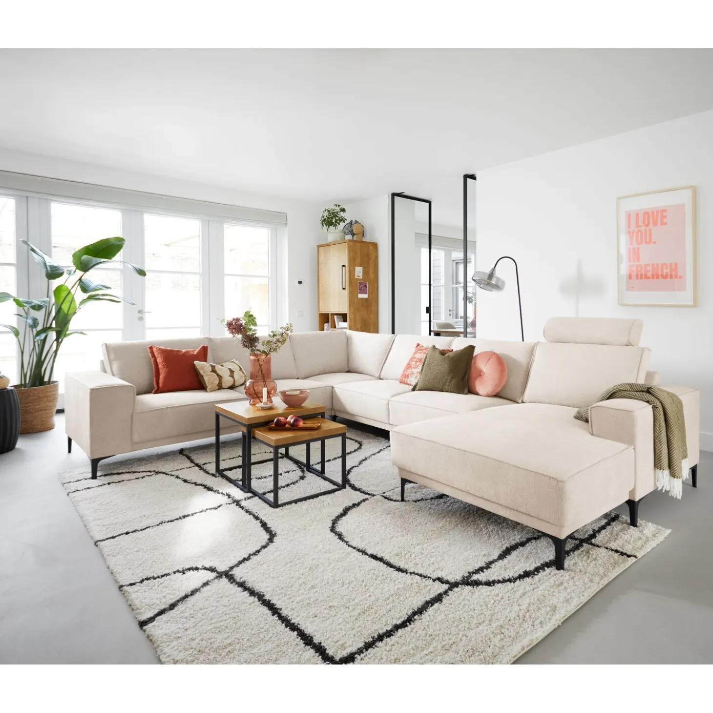 - Met 1 deur, 2 laden en 3 open vakken