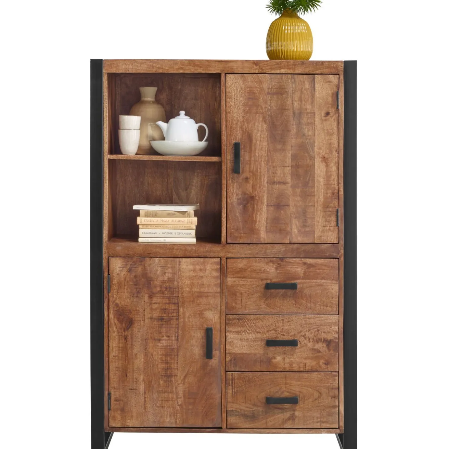 Opbergkast in mangohout met gecoat staal