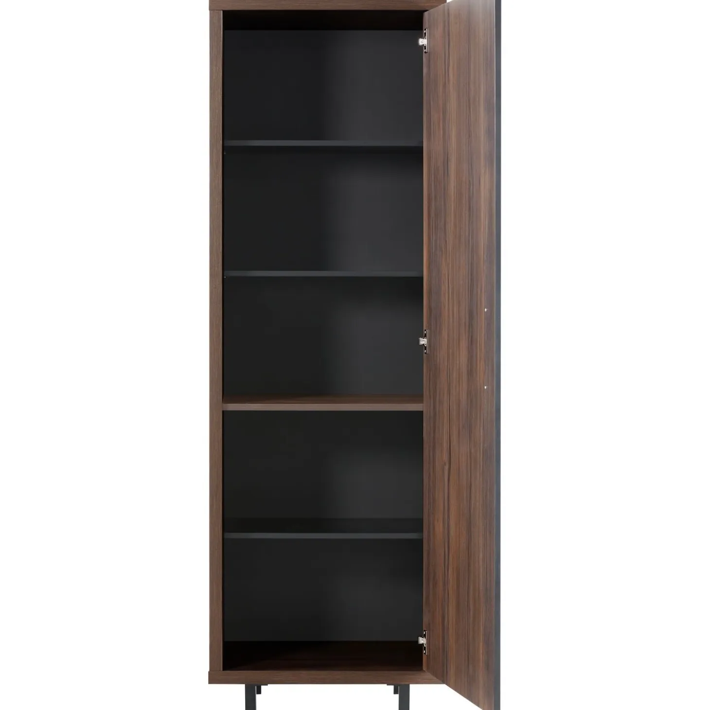 Optimaliseer jouw ruimte met de smalle opbergkast, compleet met softclose technologie voor een geruisloze sluiting. De doordachte indeling omvat een 4 handige legplanken achter de deur. Dit maakt deze opbergkast niet alleen stijlvol, maar ook functioneel.