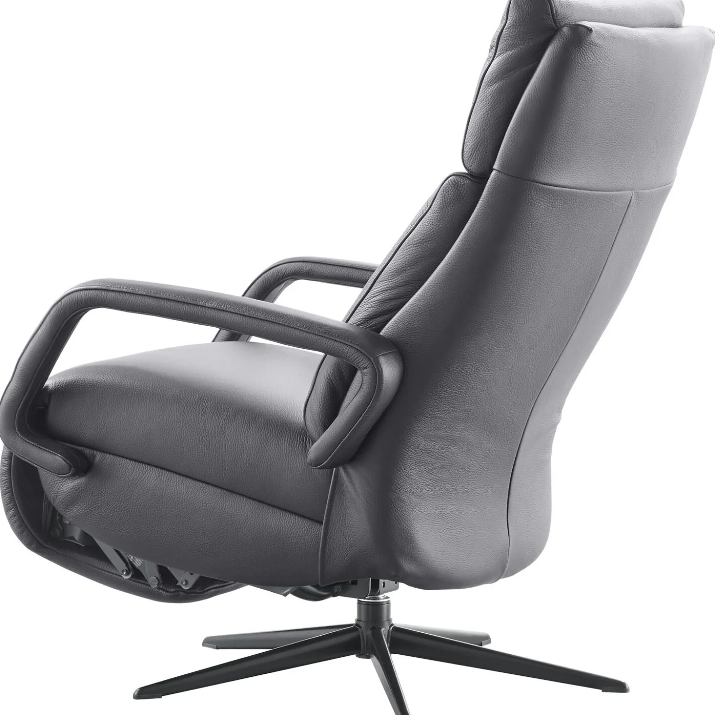 | Uitvoering | SMALL uitvoering, uitgevoerd in leder soleda/soleda 441-black met verstelbare rugleuning en voetensteun d.m.v. gasveer, verstelbare hoofdsteun, polyetherschuim met een toplaag van traagschuim in de zitting, polyetherschuim met een toplaag van traagschuim in de rug en een zwarte metalen 5-teensvoet (voet A, type PBS). |