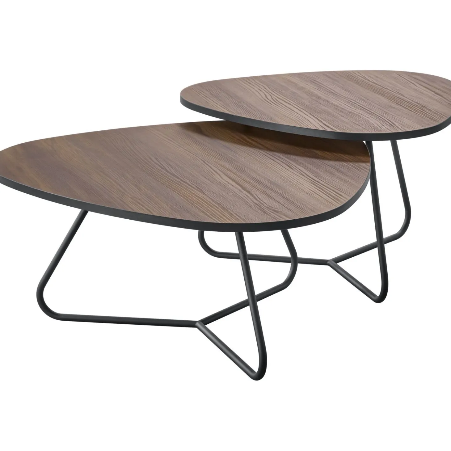 De combinatie van het donkere driehoekige bovenblad en het zwart metalen onderstel geven deze bijzettafel set Budrio een stoer en modern karakter. De set bestaat uit een tafeltje van 67x71cm en een tafeltje van 82×86 cm. Je kunt ze bij elkaar, of los van elkaar in je interieur plaatsen.
