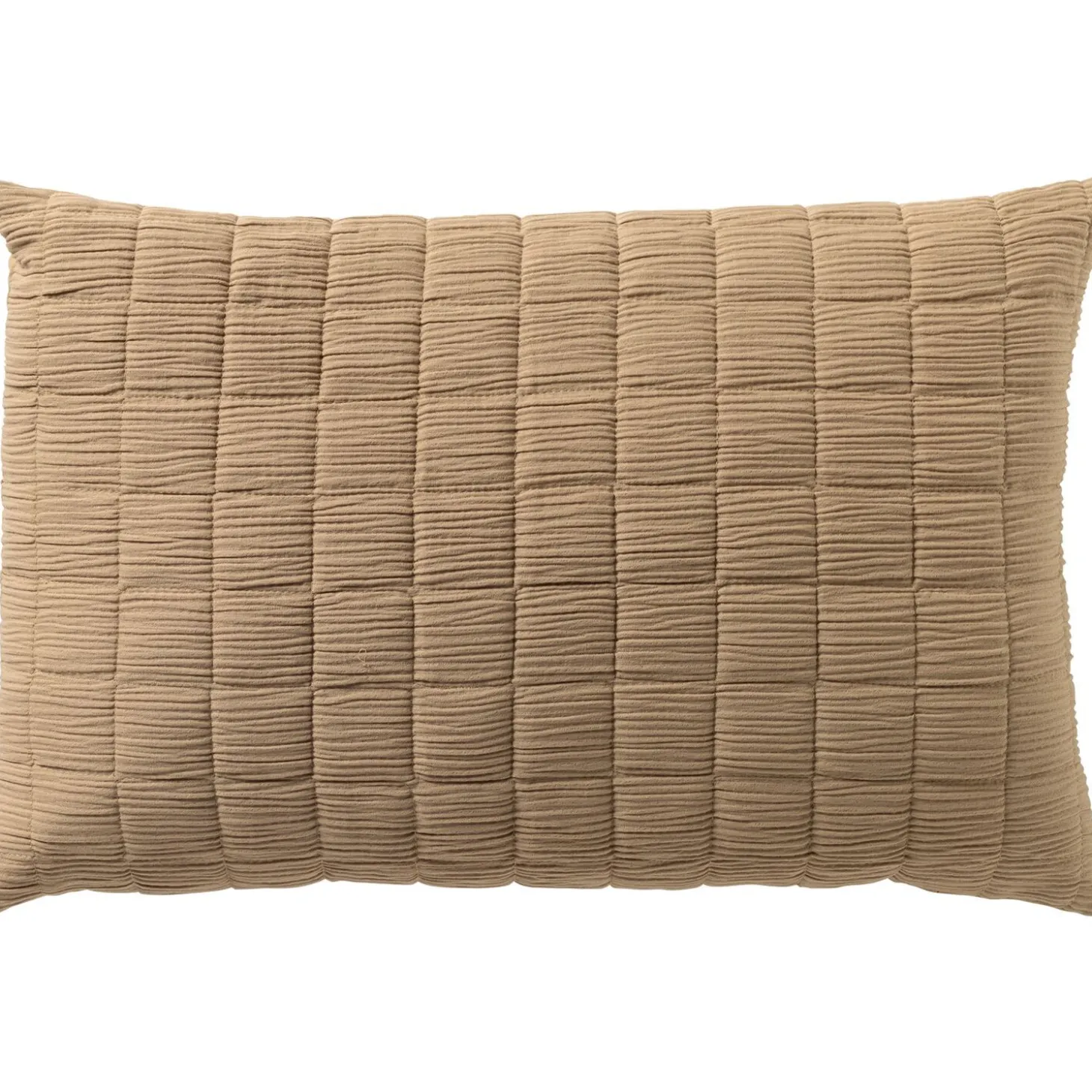 Dit sierkussen heeft een rustige beige kleur en is versierd met subtiele vierkante vormpjes. Het zachte materiaal en het neutrale design maken het kussen gemakkelijk te combineren in elk interieur. Perfect om een bank of stoel net dat beetje extra warmte en stijl te geven.
