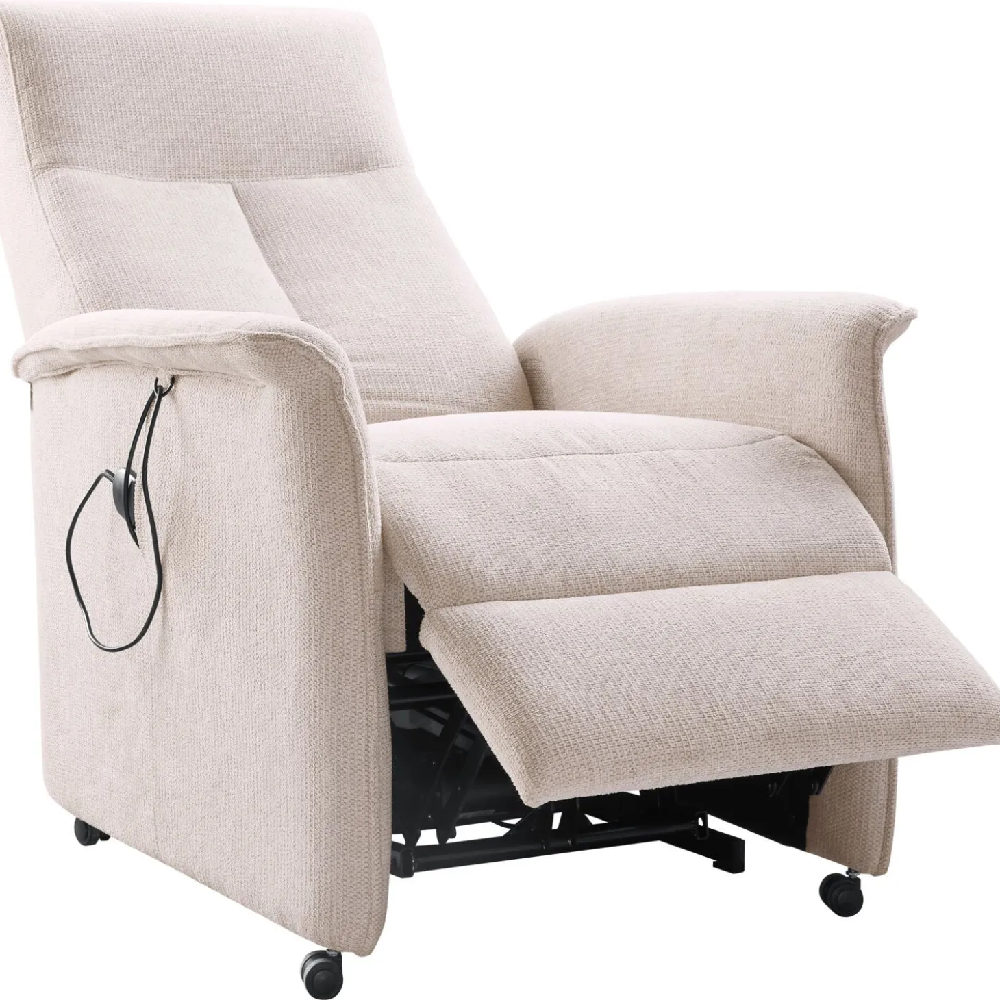 | Uitvoering | Small uitvoering, uitgevoerd in stof mito 01-naturel met sta-op functie (160) voorzien van 2 motoren en Herz Waage-functie, afstandsbediening, pocketvering met een toplaag van HR-koudschuim in de zitting, HR-koudschuim in de rug en zwarte kunststof wieltjes. |