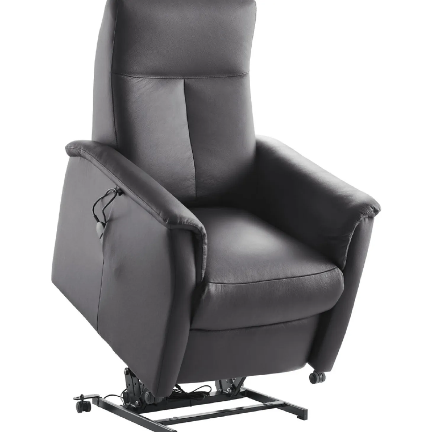 | Uitvoering | Large uitvoering, uitgevoerd in leder soleda/skai zwart met sta-op functie (120) voorzien van 2 motoren, afstandsbediening, pocketvering met een toplaag van HR-koudschuim in de zitting, HR-koudschuim in de rug en zwarte kunststof wieltjes. |