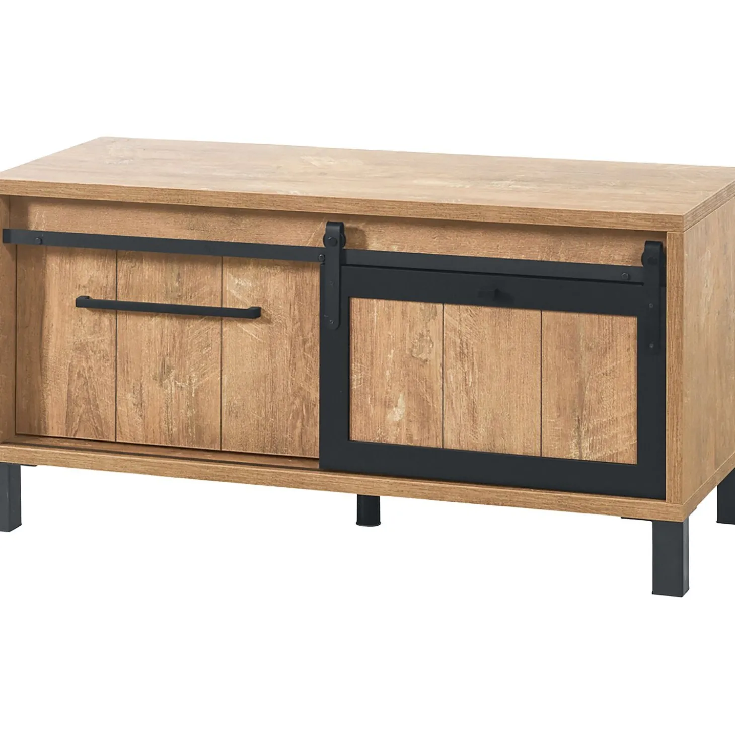 Dit tv-meubel is afgewerkt met een melamine toplaag. Melamine heeft de uitstraling van echt hout, maar het is een kras-, slijt-, en stootvast materiaal wat erg gebruiksvriendelijk en makkelijk te onderhouden is.