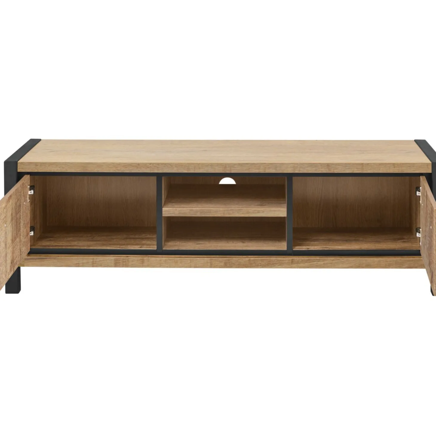 Het meubel heeft de uitstraling van massief hout. Het beschikt over 2 deuren en 2 open vakken. Daarmee kun je veel spullen overzichtelijk opbergen en ordenen. Het TV-Meubel is voorzien van een opening aan de achterzijde voor het doorvoeren van de kabels. De kast is eenvoudig te monteren middels de bijgeleverde handleiding. Daarnaast is de kast goed te combineren met de andere meubels uit de serie van Mantera.