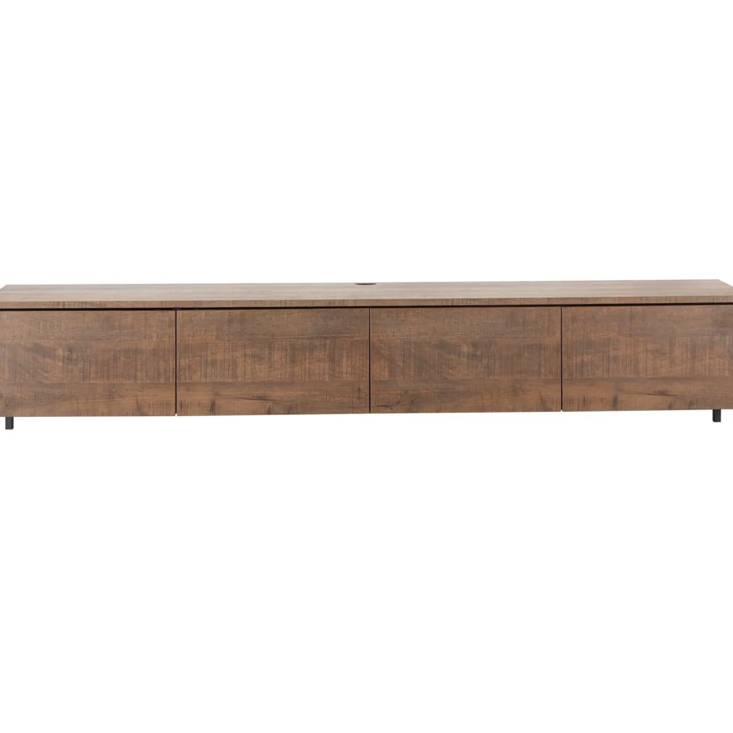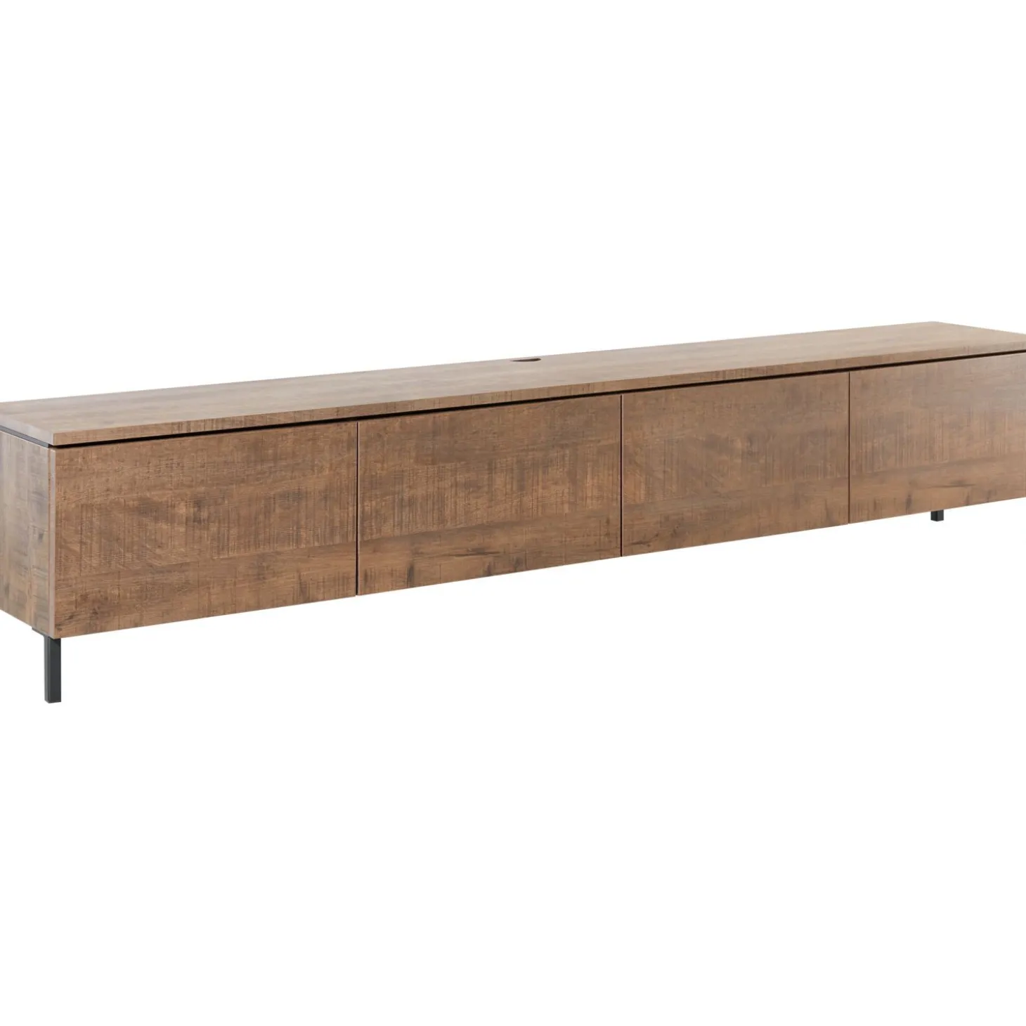 Dit TV-meubel heeft een moderne, elegante uitstraling door het warme mango decor en de rechte, ranke vorm. Het biedt royale opbergmogelijkheden door de 4 deuren. Dankzij het softclose-mechanisme sluiten de deuren geruisloos. Je opent de greeploze deuren door te drukken op het deurtje. Het TV-meubel is aan de achterzijde voorzien van een opening voor het doorvoeren van de kabels. Deze uitvoering is voorzien van zwart metalen pootjes en wordt staand geplaatst.