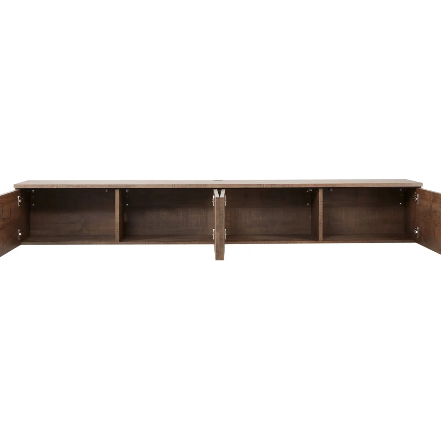 Dit TV-meubel heeft een moderne, elegante uitstraling door het warme mango decor en de rechte, ranke vorm. Het biedt royale opbergmogelijkheden door de 4 deuren. Dankzij het softclose-mechanisme sluiten de deuren geruisloos. Je opent de greeploze deuren door te drukken op het deurtje. Het TV-meubel is aan de achterzijde voorzien van een opening voor het doorvoeren van de kabels. Doordat deze uitvoering hangend gemonteerd wordt, wordt de elegante uitstraling versterkt.