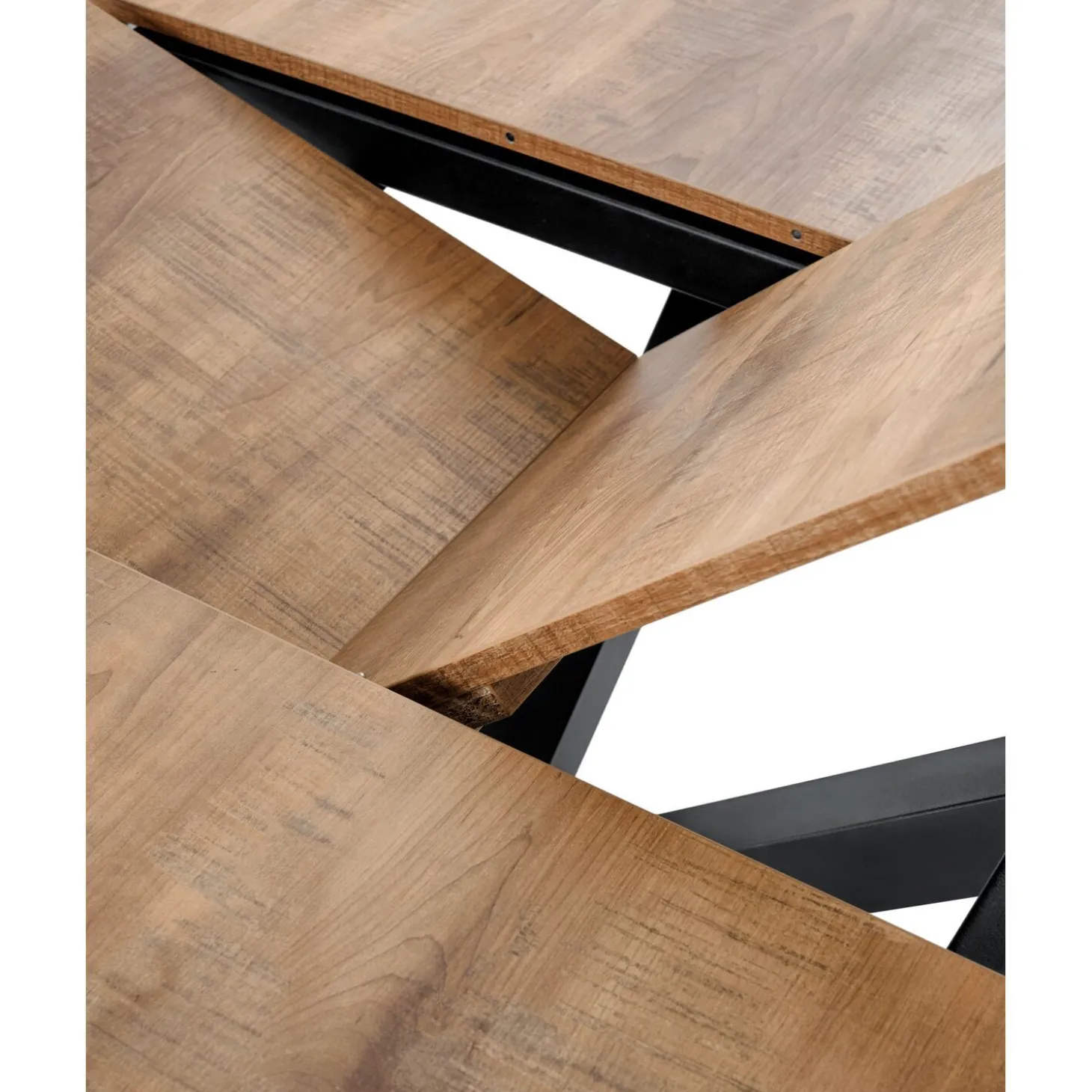 | Uitvoering | Uitgevoerd met een uitschuifbaar blad in mango decor en een zwart metalen spinpoot. |