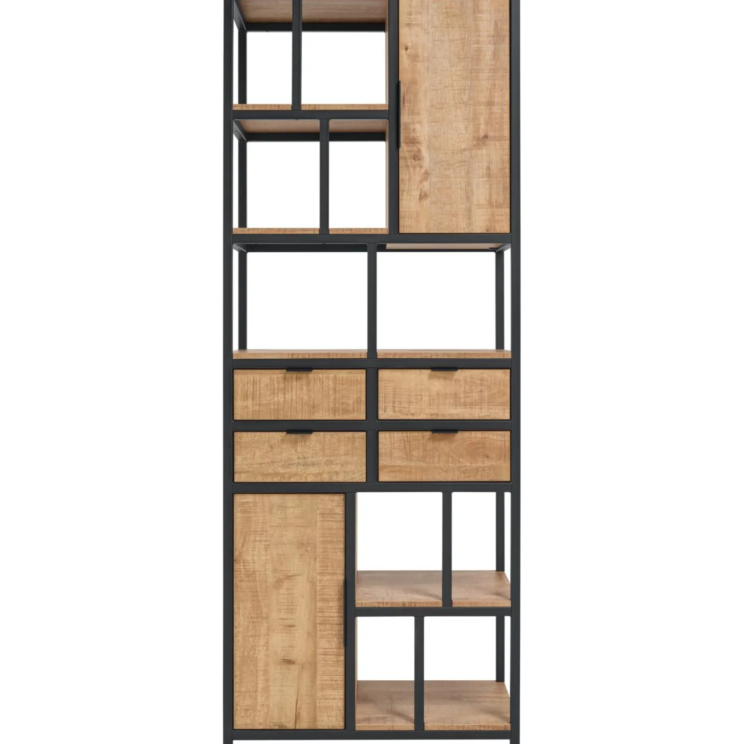 Deze boekenkast heeft een speelse indeling met veel opbergmogelijkheden door de 2 deuren en 4¿ handige laden. Door de combinatie van de warme mangokleur met het zwarte metalen frame is deze kast een prachtige aanvulling in elke woonkamer maar denk ook eens aan de hal of de slaapkamer.