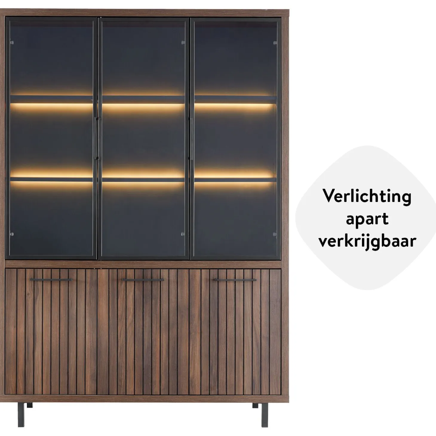 Optimaliseer jouw ruimte met de vitrinekast met 3 deuren en 3 glazen deuren, compleet met softclose technologie voor een geruisloze sluiting. De doordachte indeling omvat een handige legplank achter de deuren, en 2 legplanken achter de glazen deuren. Dit maakt deze kast niet alleen stijlvol, maar ook functioneel. Het meubel is voor een kleine meerprijs ook te verkrijgen met in de glazen deuren.